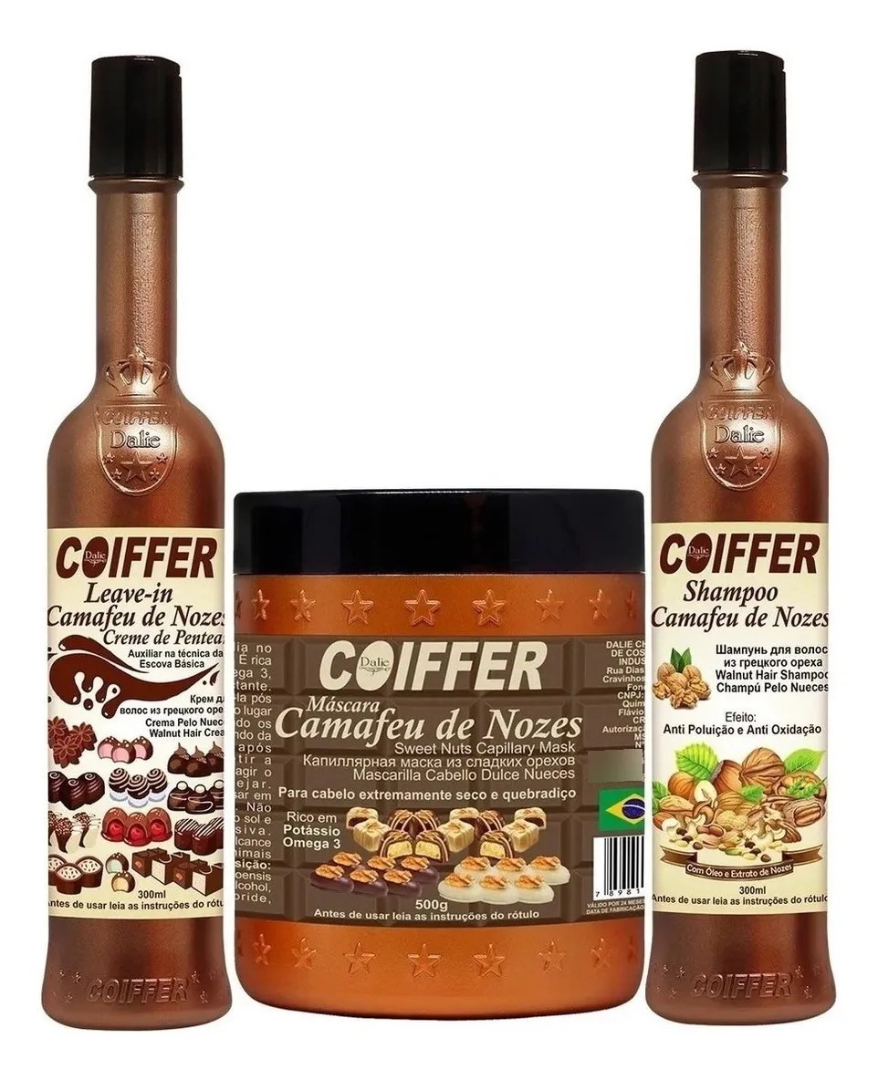 Kit Camafeu de Nozes Coiffer é ideal para cabelos extremamente secos e quebradiços, auxiliando na regeneração das células e acelerando o crescimento dos fios.