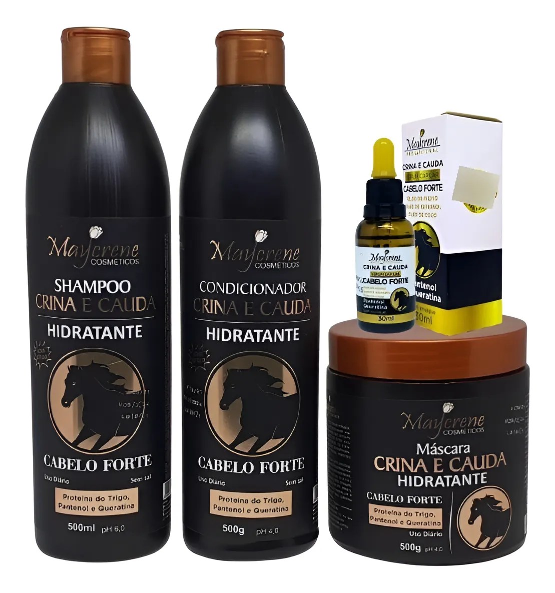 A linha Crina e Cauda Maycrene é ideal para cabelos ressecados, ela hidrata profundamente os fios trazendo maciez e brilho, além de fortalecer e estimular o crescimento.