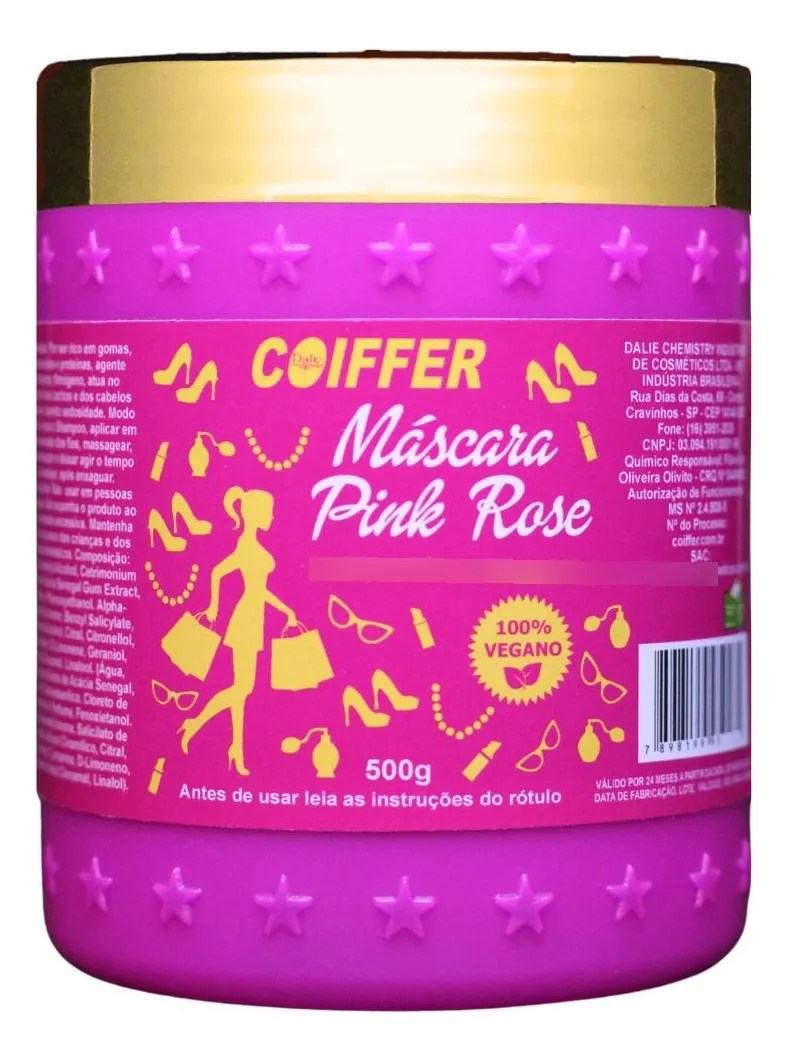Máscara Pink Rose (500g): Rica em gomas, aminoácidos e proteínas, oferece hidratação profunda e forma um filme protetor nos fios. Ajuda no controle de cachos e cabelos rebeldes, doando sedosidade e vitalidade. Aplica-se após o shampoo em toda a extensão dos fios, massageando, desembaraçando e deixando agir pelo tempo desejado antes de enxaguar.