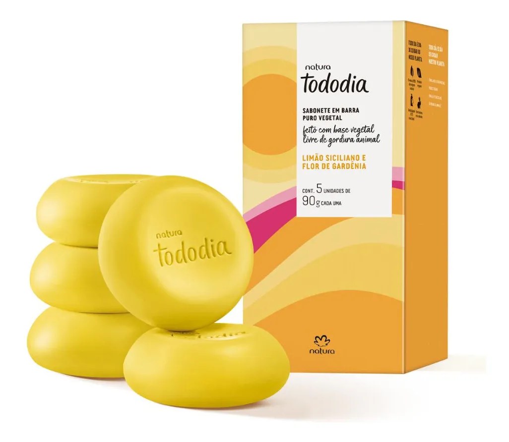O sabonete de Tododia Limão Siciliano e Flor de Gardênia limpa a pele com espuma abundante e perfumada. Sua fórmula gentil traz uma combinação de ingredientes de origem natural. Perfeito para um banho revigorante em um dia ensolarado.